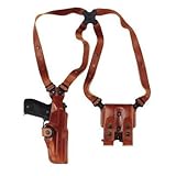 Galco combined features from our Miami Classic with a traditional vertical shoulder holster to create a system that's perfect for the 21st century's first responders and military personnel. Combat-proven in Iraq and Afghanistan, the VHS has been field tested over military uniforms and general hunting clothing with great success, and thousands are currently in use by American armed services personnel fighting the Global War on Terrorism.Although we did not set out to create another concealment rig, we discovered that it's hard to break away from our roots. The VHS provides a long-awaited alternative for those who want the concealment of our Miami Classic but, for whatever reason, prefer the classic vertical carry style.A key component of this patented shoulder system is its spider harness. All four points of the spider harness can pivot independently and are connected by our clover shape, trademarked Flexalon swivel back plate. This, along with our patented swivel connectors, results in a perfect fit and lasting comfort for virtually all body sizes and shapes.The Vertical Shoulder Holster System consists of holster, harness, ammo carrier and a set of system screws. Fully modular, optional accessories and components may be purchased separately.Whether you patrol the perilous sands of the Middle East, walk the mean streets of metropolitan America, or stalk the hunting fields of the world, the VHS will help you and your handgun stay secure in an often-dangerous world. Made for semiautomatic pistols and double-action revolvers, the VHS is ambidextrous and available in tan or black finish.