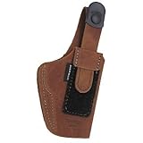 (More customer reviews)I purchased this IWB holster because it supposedly fit two pistols I use for concealed carry: a Walther PPK/S .380 and a Browning BDA .380.It fits the Walther very well, but although it will fit, the BDA must be forced and the adjustable thumb break is at its limit. With longer wear and use this may change, as the holster is, afterall, suede. By the way, that adjustable thumb-break adds to the overall bulk of the holster. The only real disappointment I have with this holster is that it rides higher than I anticipated, i.e. more of the pistol butt is exposed above the waist line, at least with my pistols.A minor annoyance is that the holster collapses after the pistol is drawn, making it very difficult to re-holster without some effort...definitely a two-handed job.I say "minor" because one isn't expecting to draw and re-holster frequently with this rig.