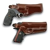 Molded, full-grain harness leather Thumb Break Holsters... ON SALE! Looky: High-quality harness leather with smooth, rich walnut oil finish... molded to give your handgun a truly custom fit; Thumb break snap holds gun securely, but allows fast 'n easy draw; Inside of Holster is a natural cut finish; Leather belt loop fits up to 2" wide belts. State Left handed or Right handed. Act ONLINE Now! AVAILABLE SEPARATELY: Other Thumb Break Holsters - word search in our Store for 'Gun Holsters'. THUMB BREAK HOLSTERS: 5 1/2" bbl; Ruger MK II / Mk 1, Bull Barrel (does not fit 22/45)