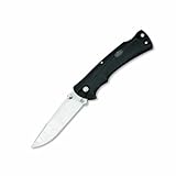 (More customer reviews)Bought two of these for the boys last Christmas.They both love them and I can see why.The blades are just the right curve, the point drops a little, but it still has a semi full belly for slicing with the tip.The handles are thin, but rounded for a good grip.The polymer material is very light weight.I picked it because it was a lock back, not a liner lock that is all the rage these days.As hoped, it locks positively and releases easily.It has a thumb stud for quick opening, but it doesn't work for me, it's too close to the hinge, the spring is too strong and the handles are too thin, at least for me.It doesn't really matter because it opens the way I open all my knives, pinch the blade about mid point, push out and swing open with the thumb.As with all Bucks it takes and holds an edge well if you know how to sharpen them (Lansky diamond kit, 22 degree holes)