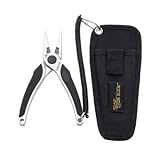 Dr. Slick Fly Fishing Pisces Pliers, straited jaw, satin finish, with anvil Tungsten Carbide Cutter and rubber grips. Comes with Coiled lanyard and 2 pocket holster.