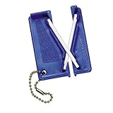 You'll always be just a few strokes away from a sharp edge when you carry this handy little Mini Crock Sharpener! Compact, lightweight, versatile... sounds pretty handy, eh? This baby features two removable alumina ceramic sharpening rods that can be easily positioned for sharpening and cleaning. Works great for knives and fish hooks. Includes a key chain lanyard for easy attachment to your keys, dufflebag, tackle box or belt. A smart thing to have in your gear bag! Order ONLINE Now! Lansky Mini Crock Keychain Sharpener