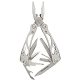 Open Frame Design Multi-Tool includes Spring-Action Needlenose Pliers, Wire Cutter, 2 Knives Blades, Saw, File, Phillips Screwdriver, Screwdriver, Bottle/Can Opener, Tool Kit and Nylon Sheath